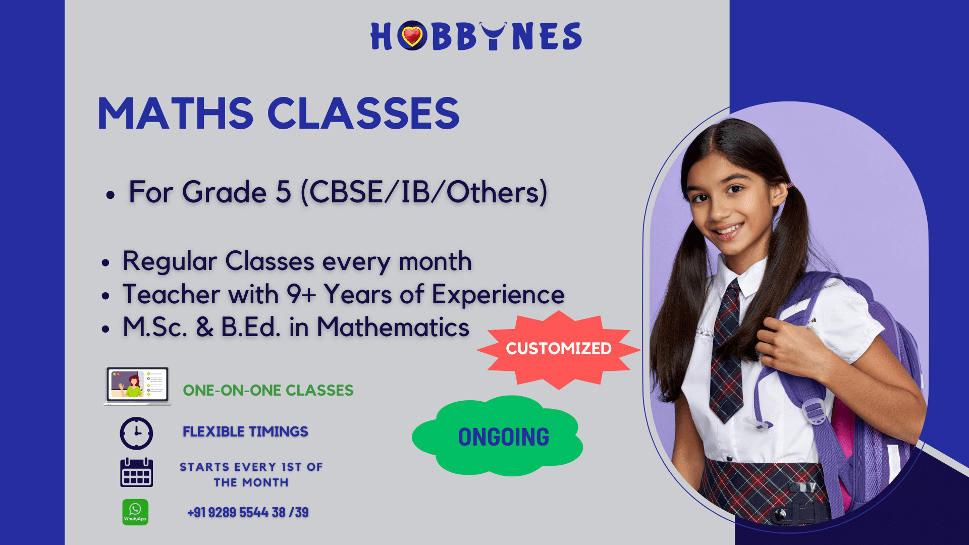 Total Experience of Teaching Mathematics of about 8+ years in Offline (8 Years) and Online (2 Years) mode. I have been teaching Mathematics at school using the CBSE curriculum and for Online (students mainly from Middle east, US and UK) on the ICSE / CBSE / State board / Local board curriculum.